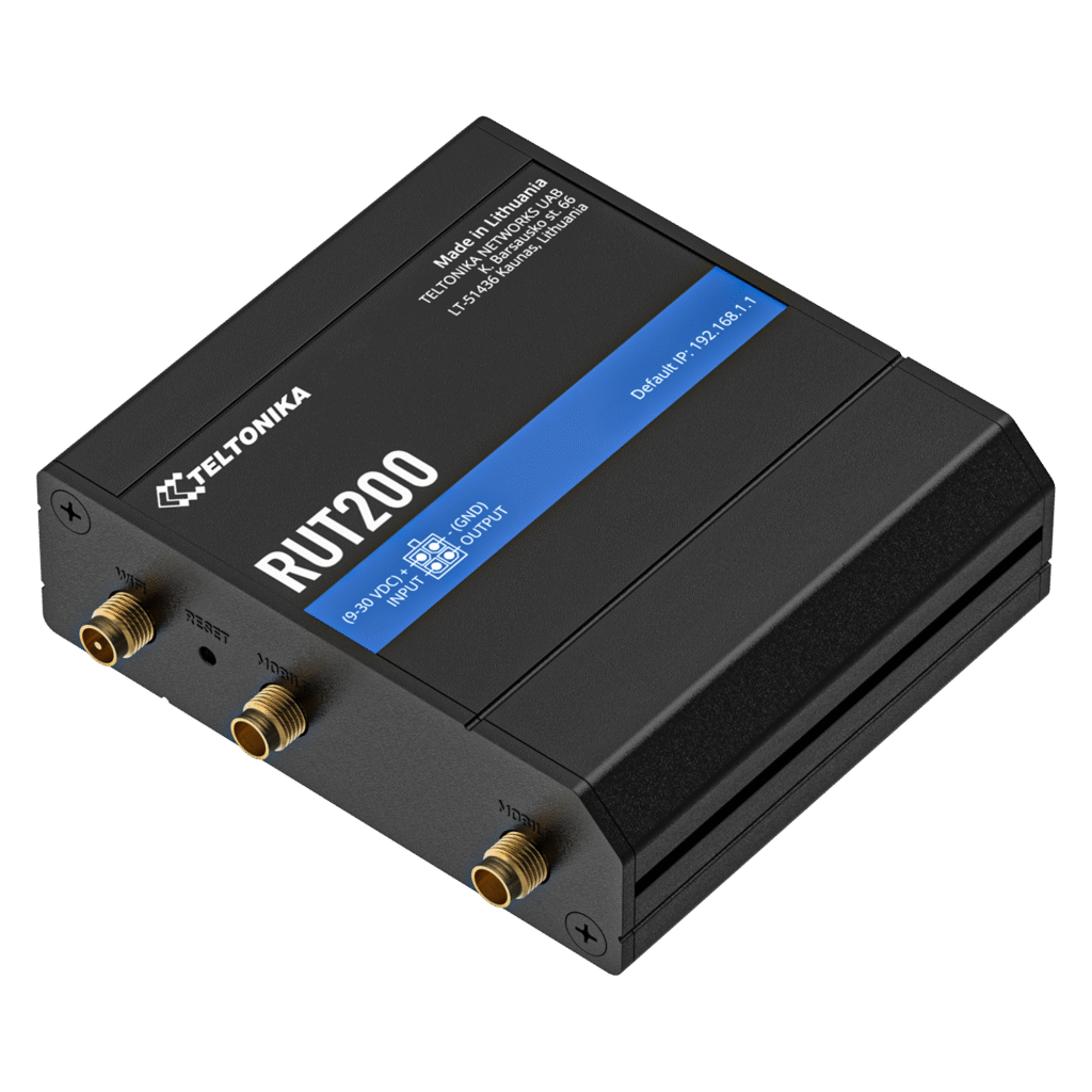 O roteador RUT200, combina conectividade 4G Cat 4, Wi‑Fi e Ethernet com failover inteligente e VPN avançada, fornecendo uma vasta gama